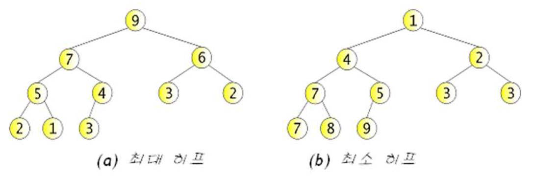 - 힙 안에서 데이터들은 느슨한 정렬 상태를 유지
