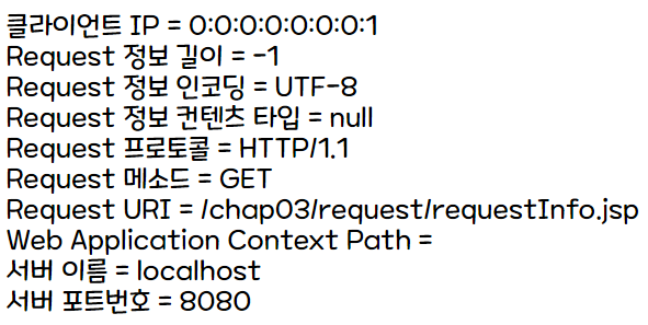 | String getRemoteAddr() | 웹 서버에 연결한 Client의 IP주소 |
