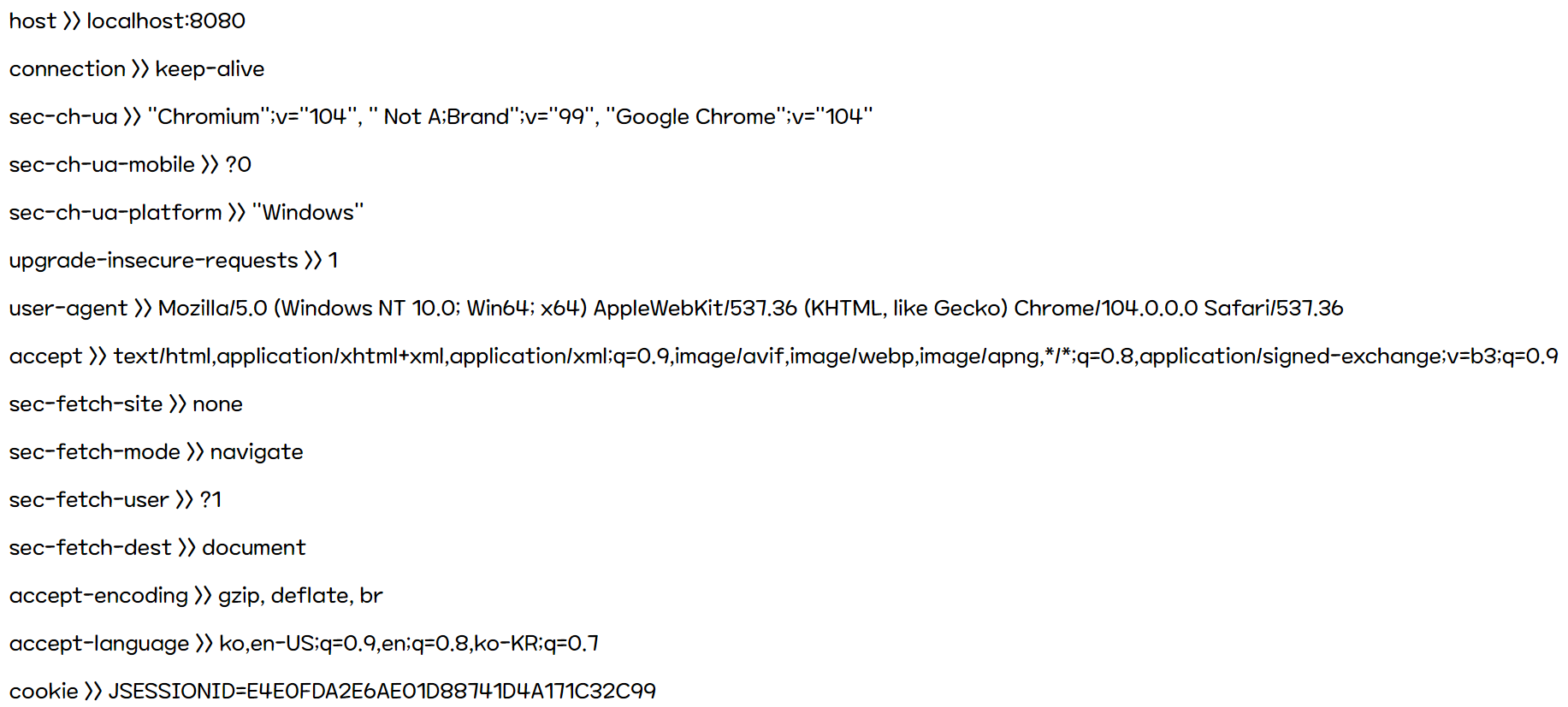 - Client가 전송한 request 헤더 읽기 (HTTP 메시지 헤더)