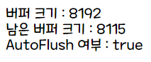 | void clear() | 버퍼 내용 비우기 >> 버퍼가 이미 flush된 상태이면 IOException 에러 발생 |