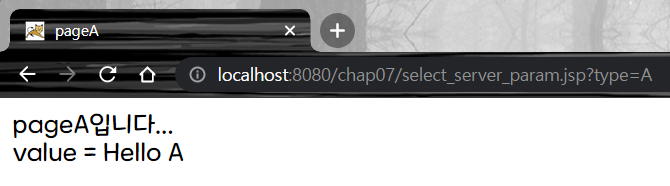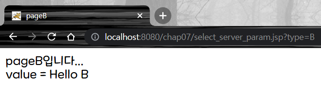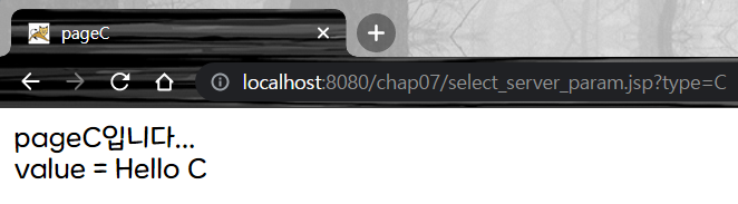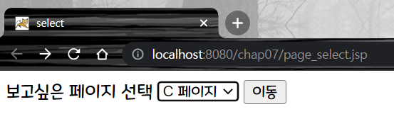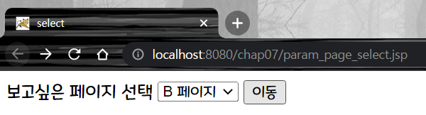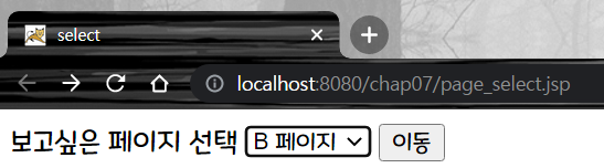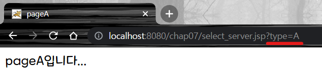 select_server.jsp에서 선택한 페이지로 forward를 시켰기 때문에 "select_server.jsp"라는 url은 변경되지 않고 흐름만 완전히 각 page로 넘어감을 확인할 수 있다