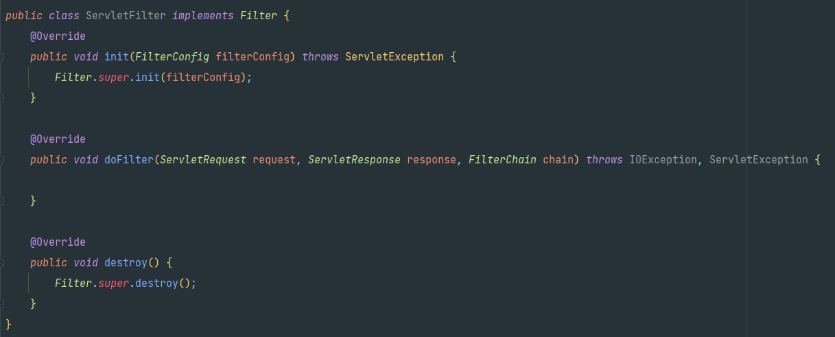 - default가 없기 때문에 doFilter는 반드시 구현해야 하는 메소드이다