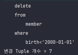 위의 코드는 "1991년 1월 1일" 이전에 태어난 멤버들을 "old_member Table"에 저장하는 코드이다
