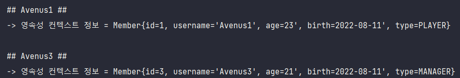 System.out.println("-> 영속성 컨텍스트 정보 = " + findAvenus3InPersistenceContext);