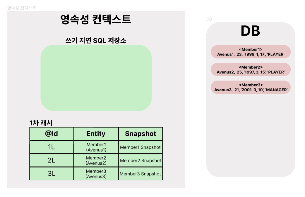 // 3. DB - 영속성 컨텍스트간 데이터 비교