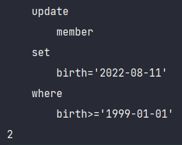 여기서 "벌크 연산"을 활용해서 '1999년 1월 1일' 이후 멤버의 birth를 '2022년 8월 11일'로 바꿔보자