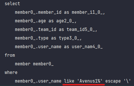 query = "SELECT m FROM Member m where m.username LIKE :username"