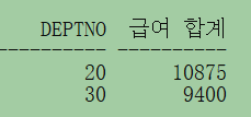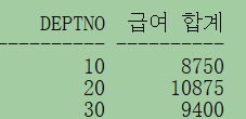 SELECT deptno, SUM(sal) AS "급여 합계"