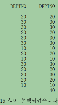 - 형식 : SELECT 1 ~ SET연산자 SELECT 2 ~