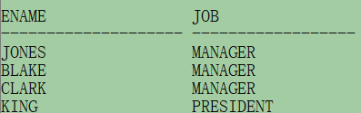 WHERE job = 'MANAGER' OR job = 'PRESIDENT';