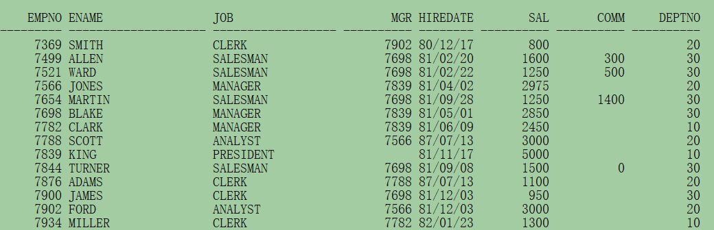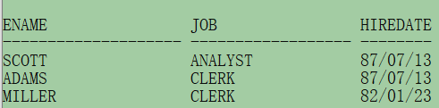 WHERE hiredate BETWEEN '82/01/01' AND '87/12/31';