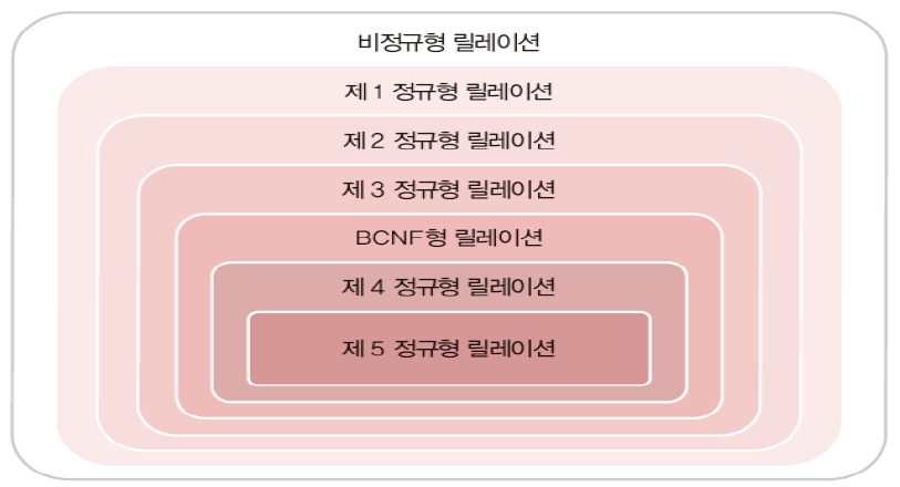 - 관계형 모델의 릴레이션이라면 모두 제1 정규형(1NF)을 만족한다