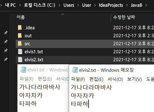2개의 파일을 입력받고 비교하여 같으면 "파일이 같습니다.", 틀리면 "파일이 서로 다릅니다"를 출력하는 프로그램을 작성하라. 텍스트 및 바이너리 파일 모두를 포함한다.