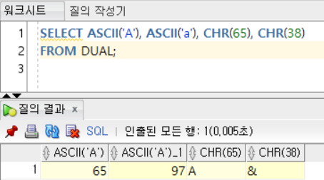 ≫ ASCII(c), CHR(아스키 n) / CHAR(아스키 n)