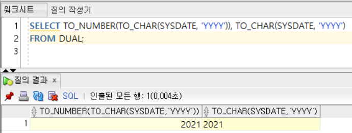 - 숫자형 리턴 / TO_NUMBER 없으면 문자형 리턴