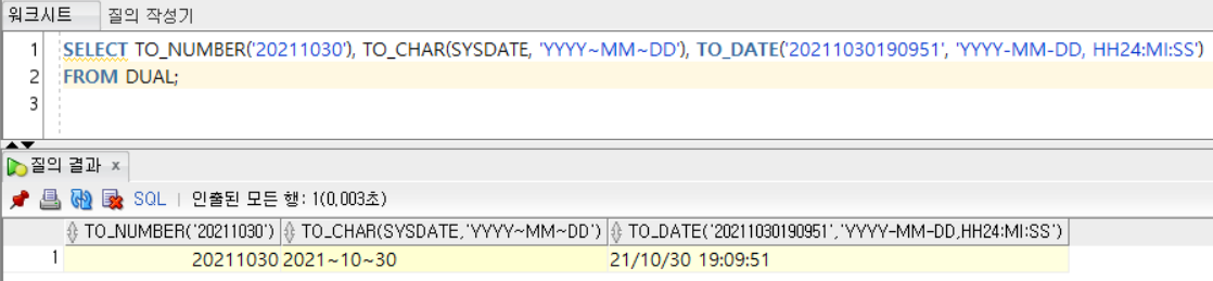 ≫ TO_NUMBER(s), TO_CHAR(n|날짜, FORMAT), TO_DATE(s, FORMAT)