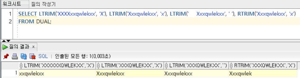 ≫ LTRIM(s, 지정 문자), RTRIM(s, 지정문자)