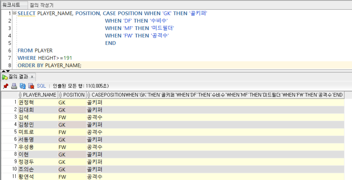 - SELECT, WHERE, ORDER BY, UPDATE(Set) 절에 사용