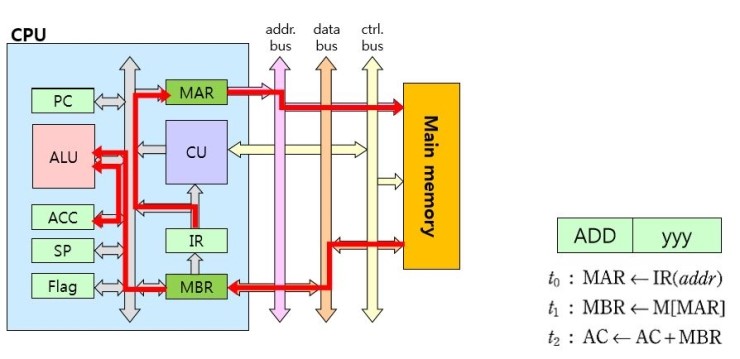 - 기억장치로부터 인출된 Data는 MBR을 경유해서 AC에 저장