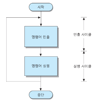 - CPU가 1개의 명령어를 실행하는 데 필요한 전체 과정