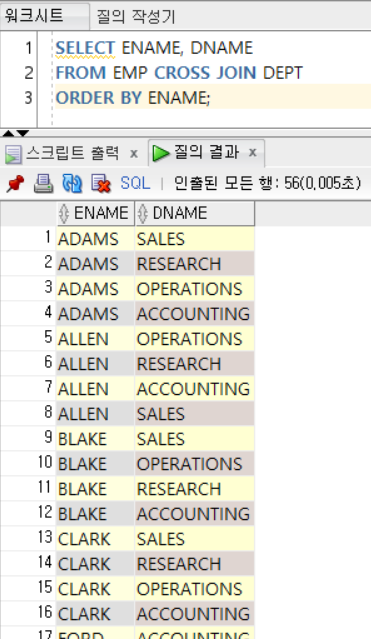 - JOIN 조건이 없는 경우 생길 수 있는 모든 데이터의 조합