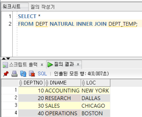 - NATURAL INNER JOIN 이라고 표시 가능