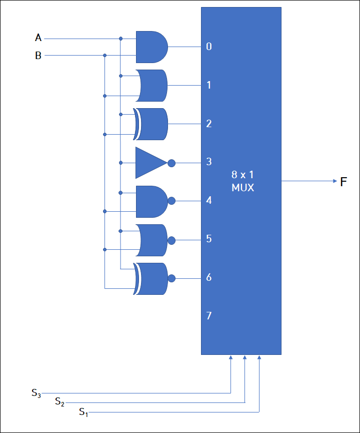 그림 3-2의 논리 연산회로에 NAND, NOR 및 exclusive-NOR 연산 기능을 추가하여 다시 설계하고, 제어 신호들도 정의하라