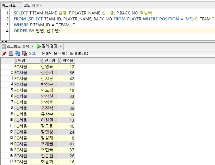 SELECT P.PLAYER_NAME, P.POSITION, P.BACK_NO, P.TEAM_ID, T.TEAM_NAME
