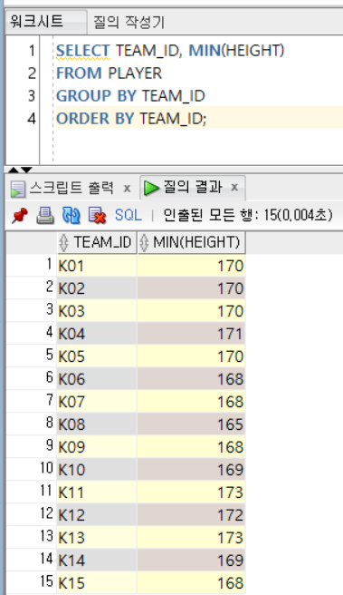 1. 소속팀별 키가 가장 작은 사람