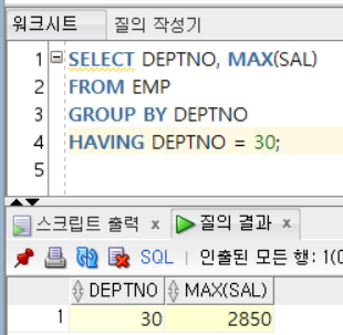 - 함수, 스칼라 서브쿼리 등 사용