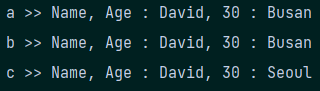 Person a = new Person("David", 30, new Address(10101, "Seoul"));