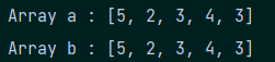 - '='연산자를 통해서 Array b가 Array a를 Copy했기 때문에 a를 Update하면 b도 Update될 것이라고 예측했다