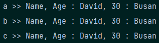 - a.getAdr().setCity("Busan")을 통해서 a의 city를 변경했는데