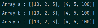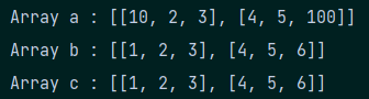 System.out.println("Array c : " + Arrays.deepToString(c));