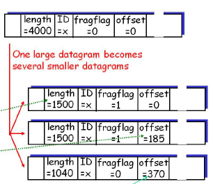 이 단계에서 데이터그램의 Identification / Flags / Fragment Offset 필드가 사용된다
