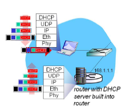 - DHCP request가 UDP/IP/802.1 이더넷 패킷으로 순차적으로 캡슐화된다