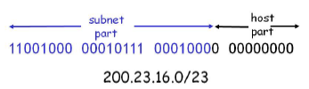 - 200.23.16.0/23 = 200.23.16.0에서 상위 23bit가 서브넷 주소이다