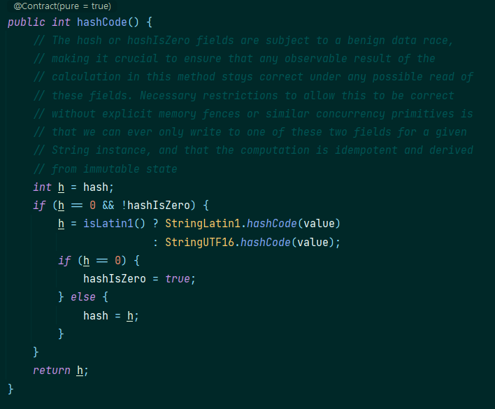- 코드를 보게되면 hashCode를 String객체의 값을 기준으로 return하는 것을 알 수 있다