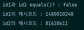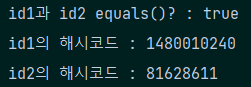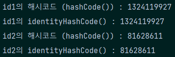 System.out.println("id2의 해시코드 (hashCode()) : " + id2.hashCode());