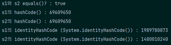 System.out.println("s2의 identityHashCode (System.identityHashCode()) : " + System.identityHashCode(s2));