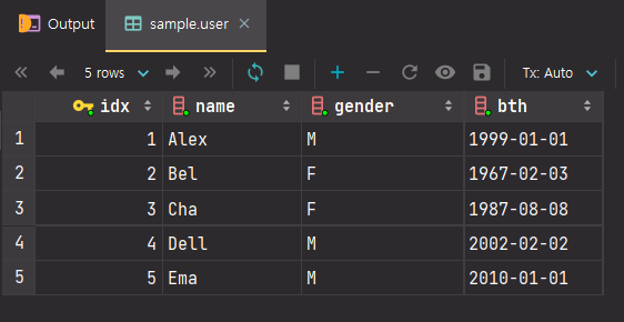 - ROW의 각 COLUMN의 타입에 맞게 필드값을 가져와야 한다