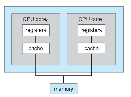 - 하나의 CPU내에 코어가 여러개 존재하고, 각 코어내에 캐시가 존재하는 구조