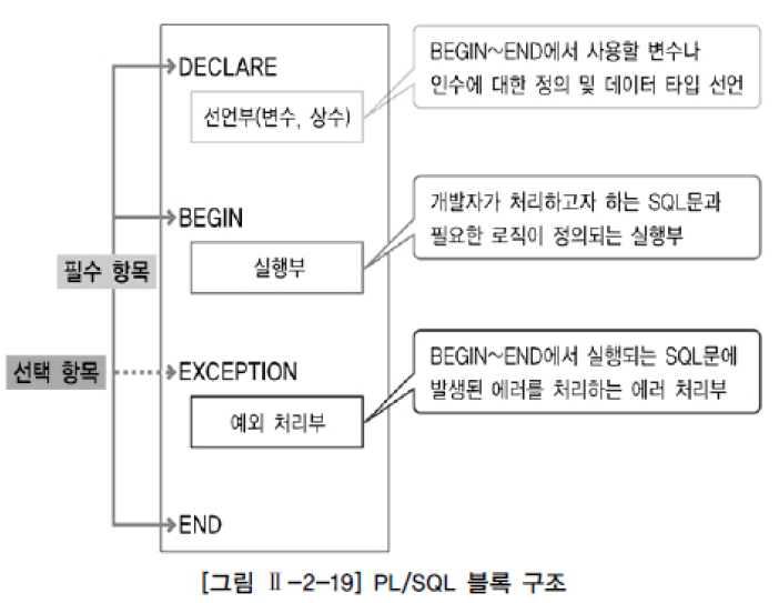 - BEGIN ~ END 절에서 실행되는 SQL문이 실행될 때 에러가 발생하면 그 에러를 어떻게 처리할 것인지 정의하는 예외 처리부