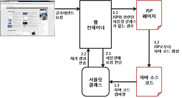2) 요청한 JSP 페이지와 관련된 "서블릿 클래스"가 있는 경우