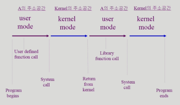 - CPU에 대한 제어가 user program에 존재하나(user mode : 1) or OS에 존재하나(kernel mode : 0)