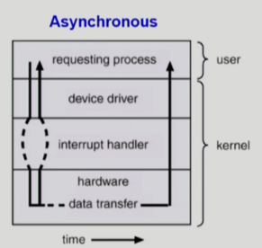 >> 동기식 I/O & 비동기식 I/O 둘다 I/O 완료에 대해서 device controller가 CPU에 interrupt를 걸어서 알려줘야 한다