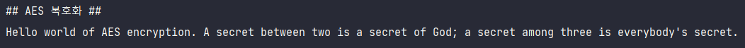 System.out.println("## AES 복호화 ##\n" + plaintext);