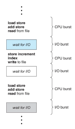 프로세스의 실행은 CPU burst - I/O burst 사이를 교대로 왔다 갔다 하며 수행된다