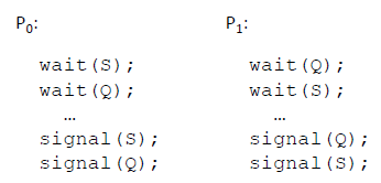 P(0)가 wait(S)를 호출하고, P(1)이 wait(Q)를 호출한다고 하자