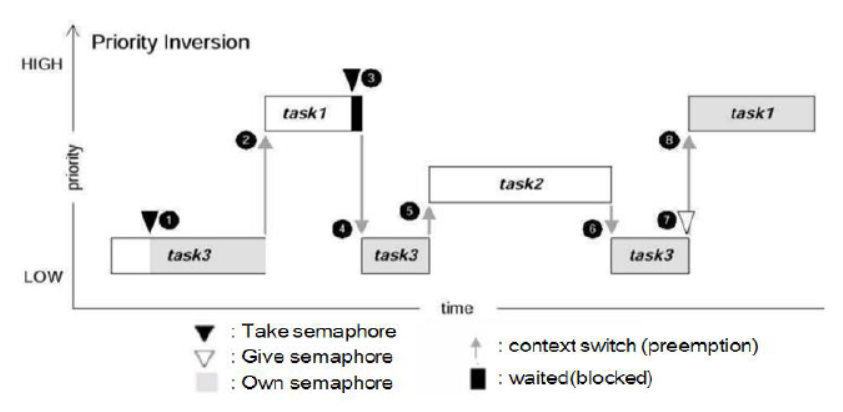 - 그리고 task3가 Binary Semaphore를 release해야 그 때 task1이 Binary Semaphore를 획득할 수 있다